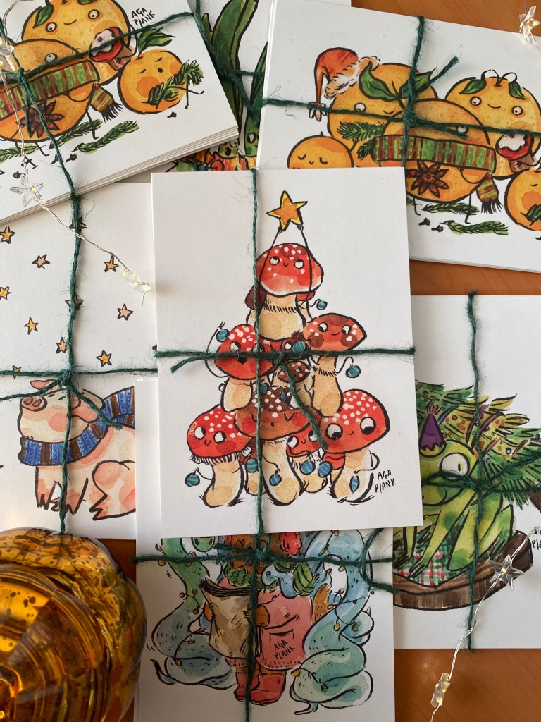 Each year with great spirit I add new cards to my Christmas Card collection. At least two new designs. Currently, I can offer 10 different designs with quirky characters that can add a bit of a spin-off to traditional Christmas card exchanges. Hopefully, you will enjoy them!